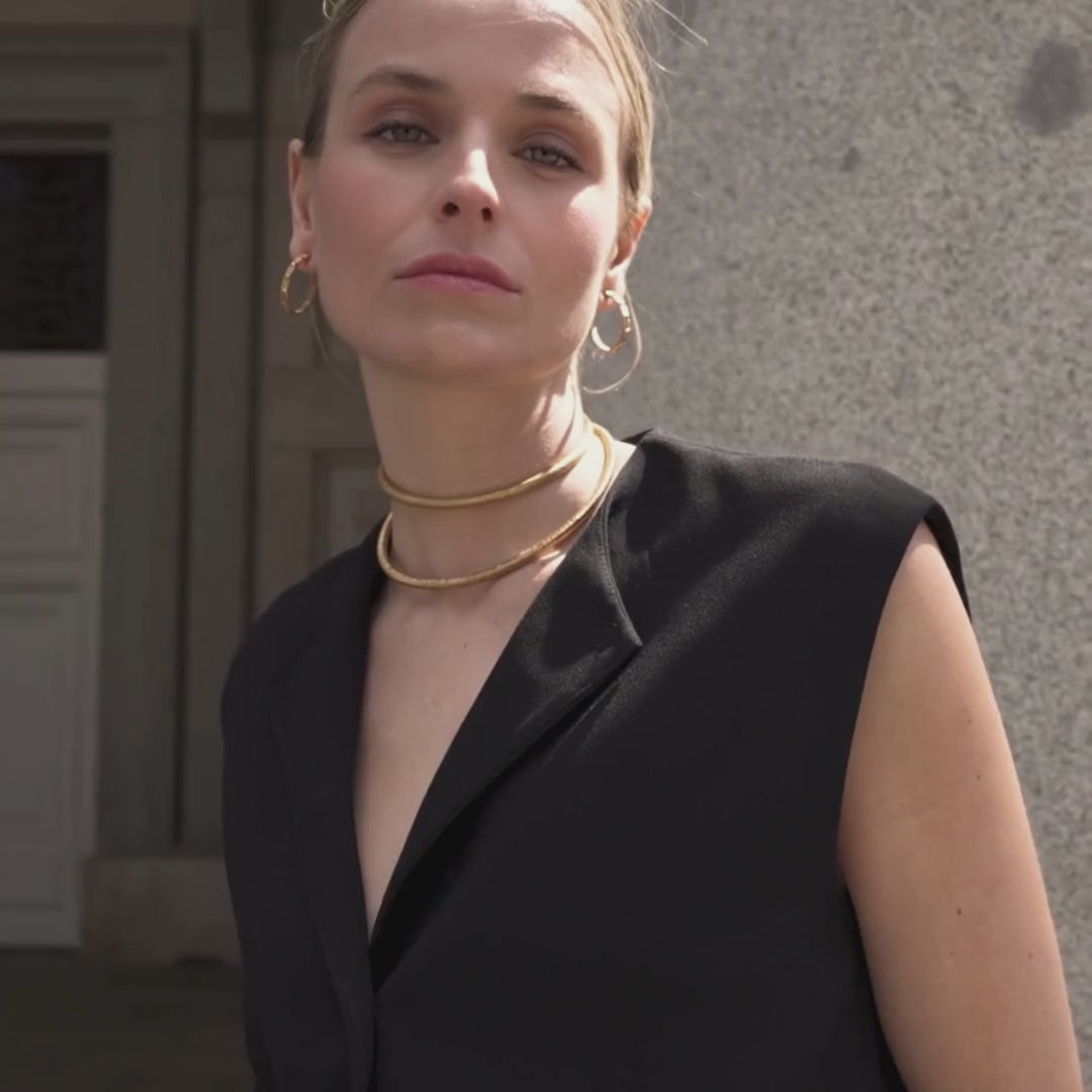 Textured choker in a brass base with 24-carat yellow gold plating.