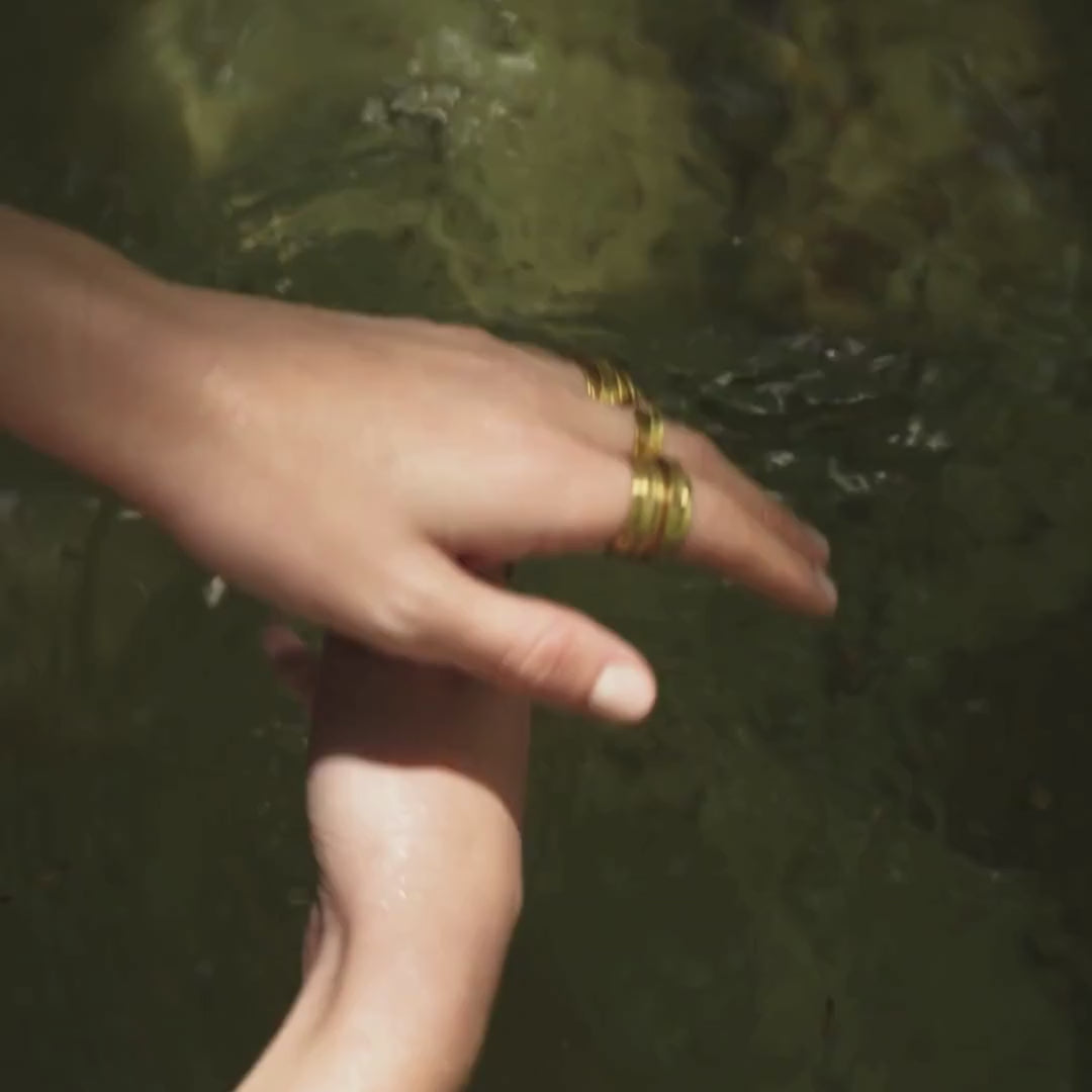 Ring made of brass base with 24-carat yellow gold plating and hand-chiseled.